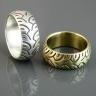 @helmet gdybym ja miał to robić to wykonałbym półokragłe obrączki dość grube, a wzór musiałbym zamienić na krzywe w "corelu" i zaniósł do grawerowania maszynowego laserem lub na CNC i powstałe zagłębienia wyrodował na czarno, a całość delikatnie wymatował. To moja rada Uśmiech
