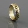 @helmet gdybym ja miał to robić to wykonałbym półokragłe obrączki dość grube, a wzór musiałbym zamienić na krzywe w "corelu" i zaniósł do grawerowania maszynowego laserem lub na CNC i powstałe zagłębienia wyrodował na czarno, a całość delikatnie wymatował. To moja rada Uśmiech
